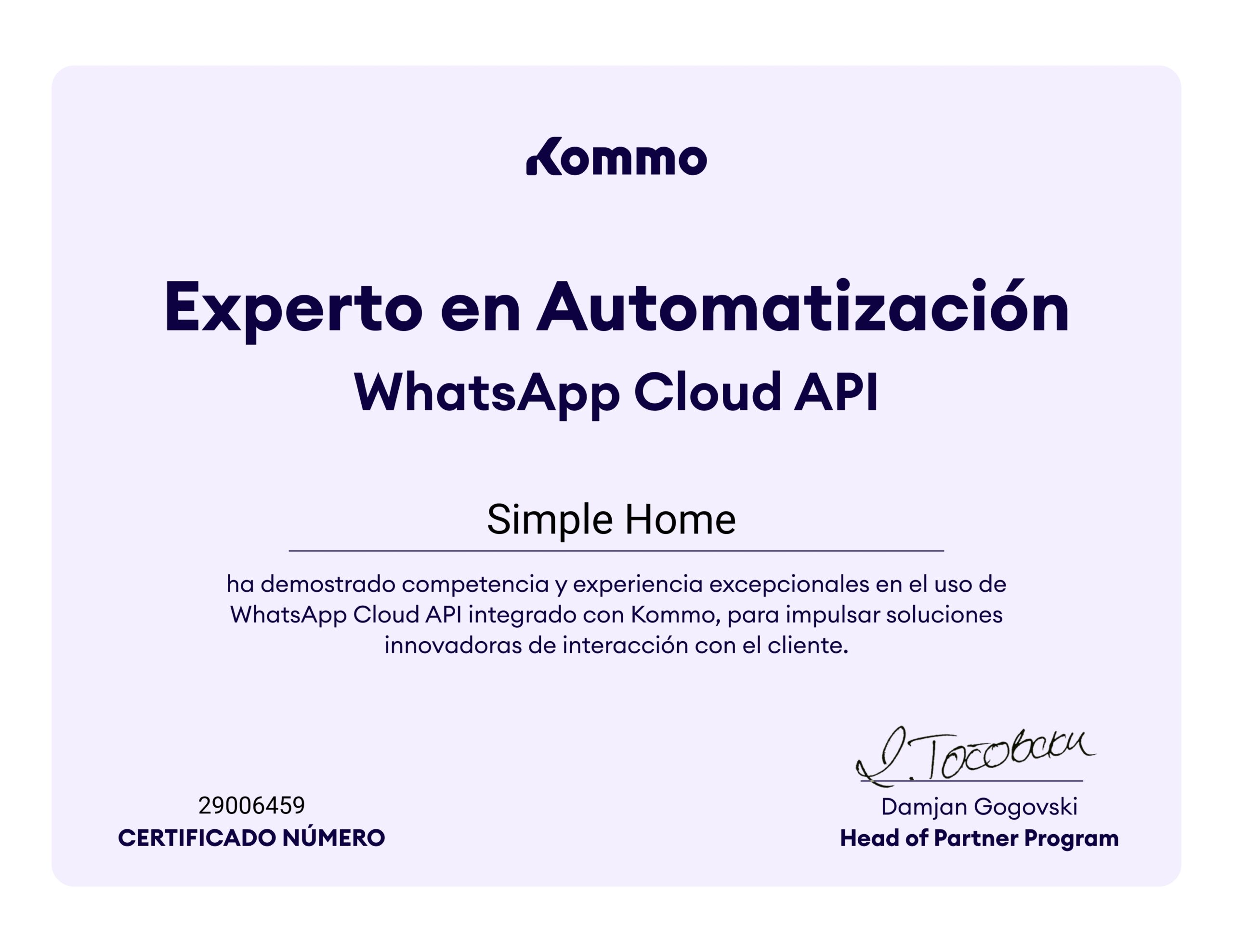 En Simple Home, somos partners oficiales de Kommo y especialistas en integraciones que ahorran tiempo y multiplican resultados.
